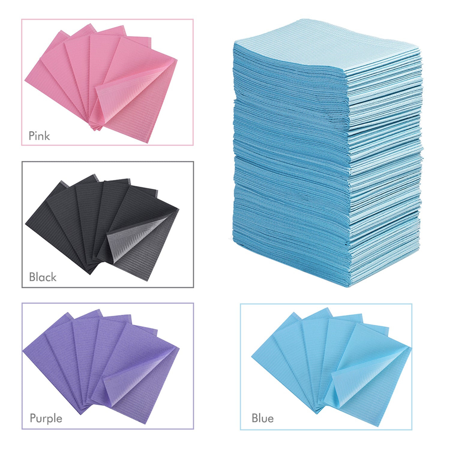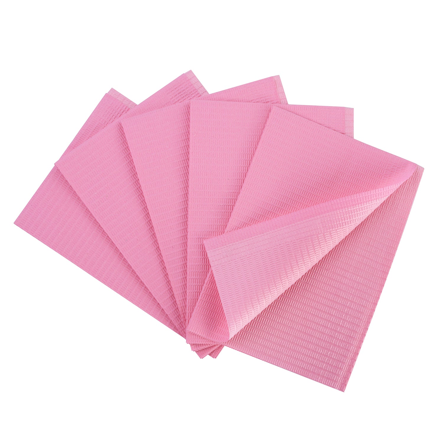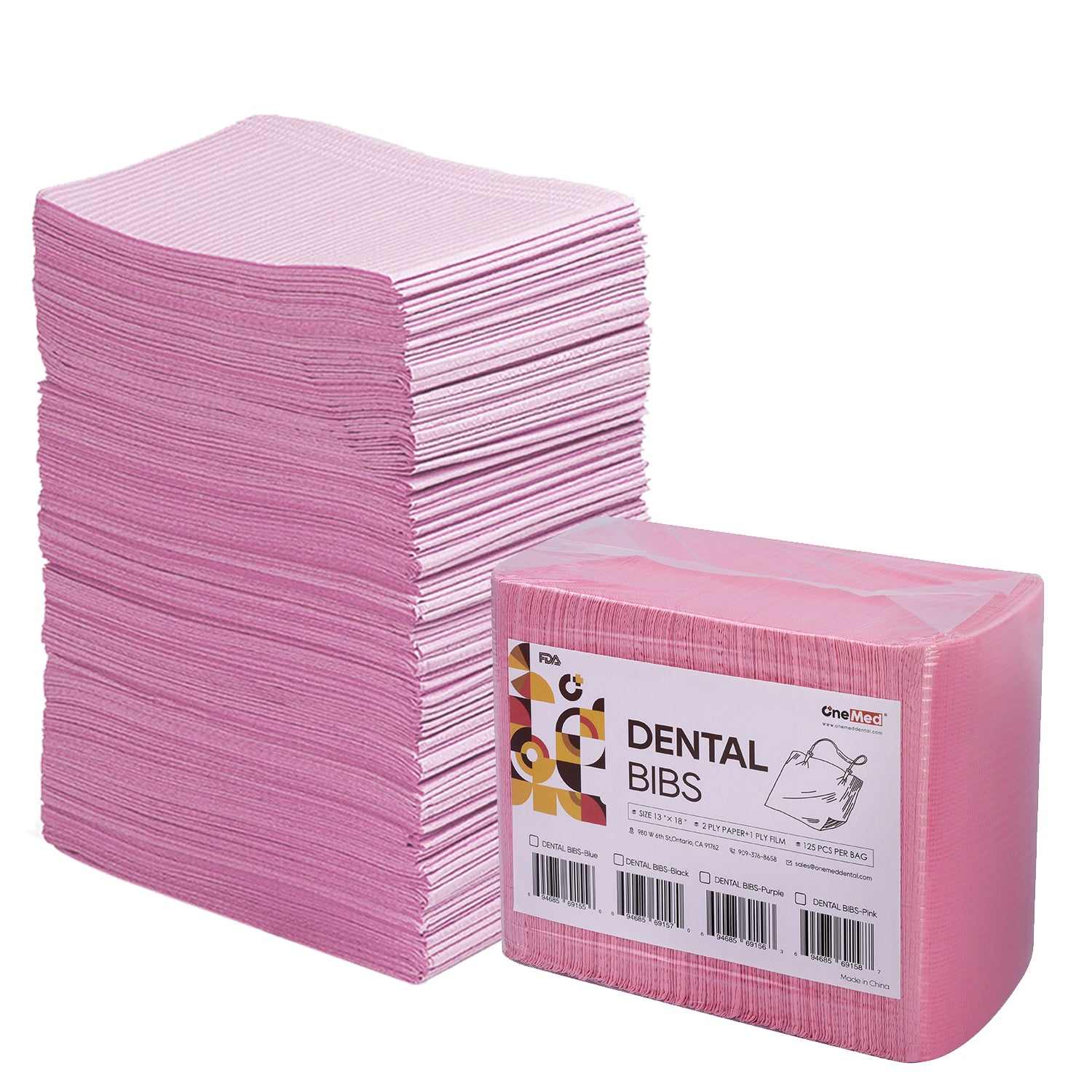 OneMed 1000(8 Bags) Disposable Pink Dental Tattoo Patient Towel Bibs 3-Ply 13"x18"